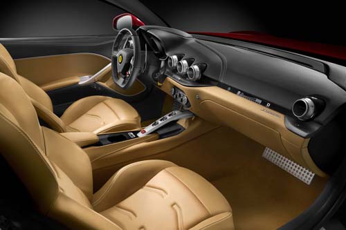 F12 Berlinetta為提供更頂尖的制動表現,也導入全新一代碳陶瓷煞車系統(CCM3)與E-Diff電子差速器,而且比起原有的599超跑尺碼略小,尺碼則為4618/1942/1273mm,但原廠表示車室與行李空間表現均更為優異,而且車室內裝更導入全新概念的介面配置,而且這款由原廠與Pininfarina合作打造的新超跑,也導入各種極盡奢華的頂尖材質來打造駕駛艙。更符合空力表現的車身設計,車身側面更設計專屬的氣流與煞車系統冷卻通道,更可提昇動態行車時約76%的下壓力表現,約可於時速200km/h產生達到123kg,整車正面風阻Cd值則為0.299。