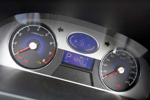 | 儀錶組設計相當簡潔,油量與水溫則是採用數位液晶顯示。 |
