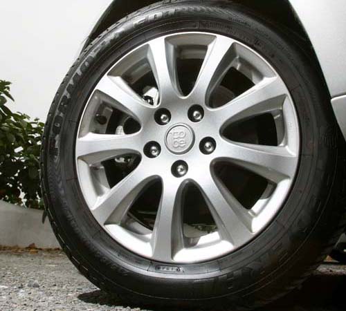 | 原廠配胎尺碼為稍大的215/55R16,能兼顧到乘坐舒適性與駕馭性能。 |