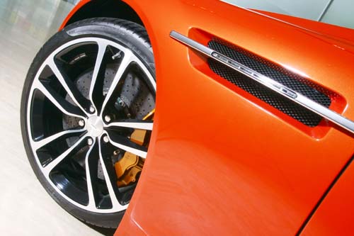 特殊成分的金屬漆料及塗裝技術是Carbon Edition在外觀上的重點所在,每部車均經過長達50個工時並採取七層的漆面施工才完成,如此細膩的工法讓DBS Carbon Edition呈現出獨特風采。此外,五爪十幅的20吋鋁圈也是專屬配備,原廠提供黑色與亮面的雙色系處理方式,當然,CCM(Carbon Ceramic Matrix)碳纖陶瓷煞車也在標配項目中,比傳統材質輕了12公斤並提供效率更高的制動效能。