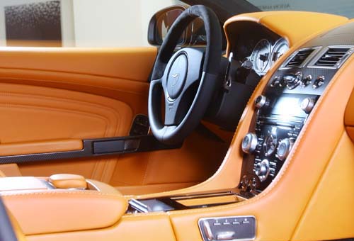 | 焦黃色的真皮內裝與橙橘色車身相呼應,細膩的皮革與精緻做工突顯Aston Martin追求完美的最高品質。 |
