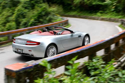 開了篷,少了礙事的車頂後,讓人零距離享受這組賽車排氣系統(價值17萬元)演奏的動人樂章。隨著油門的踩踏幅度與檔位切換,這具V8引擎在2500~4500rpm之間的聲浪有如美式肌肉車,呼嚕、呼嚕的節奏有如戰鼓,而轉速一過5000rpm開始轉為高亢,在山谷間持續繚繞的猛烈音爆,對坐在車內的乘客或路人來說都是一種享受。將視線轉到車內,就如同先前曾介紹過的每一款Aston Martin,這部V8 Vantage Roadster仍保有該品牌一貫的特質,制式的內裝架構結合資深工匠以純手工縫製的皮革座椅,細膩作工與極佳觸感堪稱一絕,而此次試駕的車款更選配Chancellor Red真皮搭配銀色車縫線,更突顯出Aston Martin特有的奢華氛圍。此外,配備方面除了列為標配的雙區恆溫空調及160瓦標配音響主機,也選配了藍牙系統與前方測距雷達。它是一部快起來仍能夠讓人保持冷靜的超跑,優異的懸吊設定與循跡性讓它不至於發狂,讓人放心且盡情享受速度與駕馭快感,而舉手投足間的優雅身段,不管從哪個角度看都是那麼樣的迷人,那是一種自然散發的自信,英式風華與尊榮。試駕感言──出自內心的自信與品味超跑追求的是速度,頂級房車追求的是極致奢華,而Aston Martin選擇了自己想走的路,將車打造成為一種品味與個人風格的展現;論速度,它並不是最快的,比配備,它也不是最豐富的,但論格調,V8 Vantage Roadster一種出自內心的自信與品味。