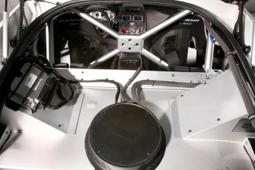 | 為了將車身重量減至最輕並符合競賽要求,車內裝上多點式防滾架與賽車桶椅,乘客座賽車椅為選配件。 |