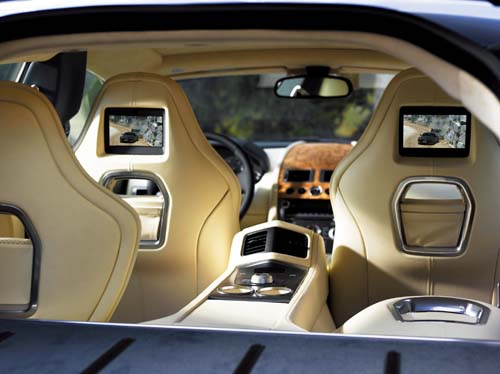 | 奢華且剪裁精緻的內裝,從手排換檔撥片、電子式手煞車及液晶螢幕賦予的視聽娛樂功能都可在Rapide身上見到;能前傾收折的兩張獨立式後座椅背可與後行李廂結合而成為載物平台,容積將從原本的301公升擴大至750公升。 |