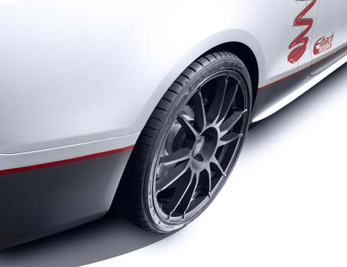 作為Audi賽車運動官方指定懸吊供應商的Eibach,除了在賽場上屢屢獲得佳績以奠定絕佳的操控表現與成績之外,對於道路上所使用的Audi車款,Eibach同樣能提供優異的底盤設定與操控性,為了達到實力證明Eibach特別以Audi S5為基礎,藉由B12 Pro Kit、Pro-Spacer與強化防傾桿進行搭配,另外還有三套胎圈組合以因應不同使用目的。首先除了Pro Kit運動短彈簧能夠降低車高達40mm,另外還可選用B12 Pro Kit有效達到動態平衡性,並且進一步強化視覺吸引力。配合車輛高度有效降低,高強度鋁合金材質製成的Pro-Spacer能有效加寬左右輪距增進車身穩定性,而強化防傾桿則可抑制車身側傾以增加過彎時的反應與靈活性,同時減少內外輪的負載差異性,進一步提高整體敏捷性和駕駛樂趣,當然所有Eibach懸掛套件更提供了高抗腐蝕性與TUV認證的嚴格把關。