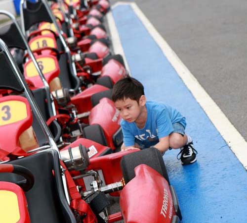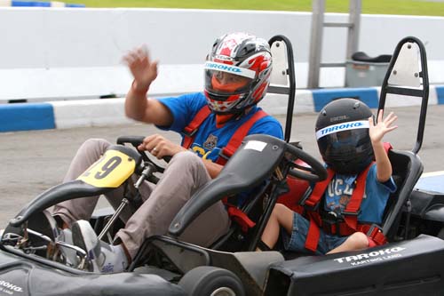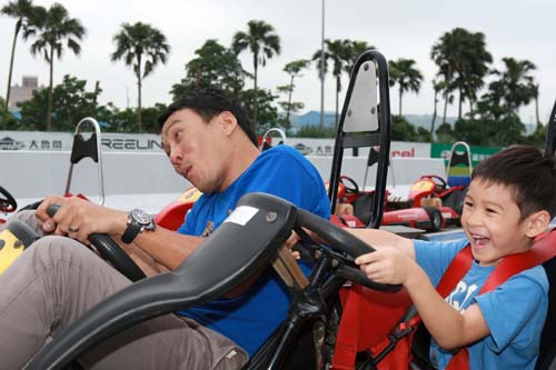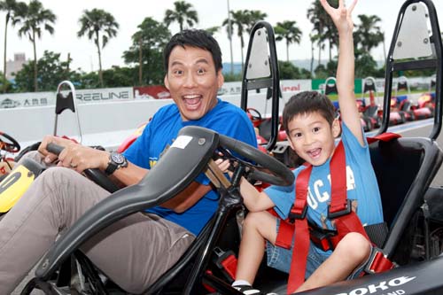 | 知道今天要來大魯閣玩卡丁車,艾力克斯說超愛車的兒子Ryder足足興奮了好幾天啊! |