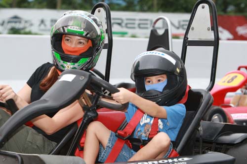 | 在大魯閣正式下場體驗親子雙座卡丁賽車前,大人小孩都必須依照規定穿著安全帽。 |