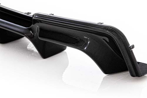 作為目前BMW旗下最小的M Coupe版本(E82),除了原廠引擎可爆發出340hp/45.9kgm(瞬間超壓可達51kgm)實力令人著迷之外,為了提供車輛更為優異的空氣動力學,Vorsteiner針對1M Coupe首度發表升級版空力套件。首先在車頭方面,藉由碳纖維前下擾流不僅能夠有效降低空氣阻力並且提高車頭穩定性,而順勢所導入的冷空氣同時能進行煞車系統散熱,另外整合於後保桿的大型分流器不僅能提供車尾強烈的視覺效果,對於抑制車底所產生的亂流也可增加後輪的穩定性,除此之外同樣採用碳纖維材質的尾箱蓋則是同時整合了小鴨尾設計,只需些微的碳纖維紋路即可營造出更為高性能般的氣勢。