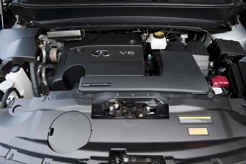 顧名思義,JX35所搭載的即是著名的VQ系列引擎,而該具原廠編號VQ35DE的3.5升V6汽油引擎搭配CVT無段自動變速系統後,擁有265hp/6400rpm最大馬力與34.3kgm/4400rpm峰值扭力數值,而從以往曾接觸過該套動力系統的經驗來推論,預計JX35的動力性能仍頗有可觀之處。郭慶裕