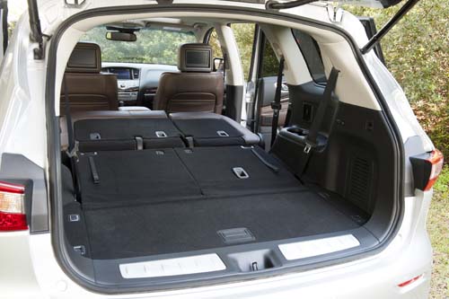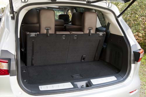 除了Infiniti品牌原本即已搭載、頗為著名的Safety Shield行車主動防護科技系統外,JX更首度搭載獨家的BCI盲點後撞預防系統,能在倒車時有效降低由於視覺死角所可能導致的意外事故,特別是對於車身尺碼較為龐大的7人座LSUV車款來說更是相當受用。受惠於無台階的平整式車身地板設計,再搭配可前後滑移達14cm、具有60:40分離式椅背與角度調整功能的第2排座椅,不僅可滿載7人一同出遊,行李廂容積也可由最基本的447升,一舉提昇至最大的2166升(兩人座模式)為止,空間變化機能不僅實用且相當多樣。