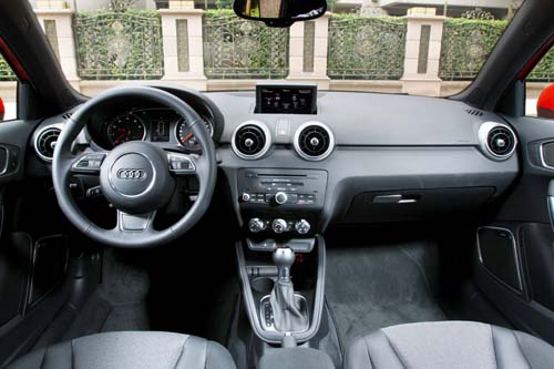 Audi為A1 Sportback準備了非常運動化的外觀,我們不得不佩服Audi的工程師在延長了車身、加上兩道後門之後,還能維持A1精悍俐落的外觀線條,而我們試駕的Sport版本不只搭載動力輸出較為強勁的1.4 TFSI引擎,在外觀上也有著不同於標準版本的前後保桿與造型更為誇張的後擾流翼,即使是實用型的五門車型,依然帥氣十足。而Audi準備的這部試乘車,更大膽採用紅色車身搭配黑色車頂的配置,讓整體的造型顯得更為搶眼;當然,依照過去的慣例,雙色塗裝肯定是得加錢的額外選用配備。