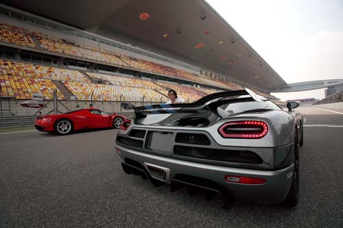 兼顧活動式硬頂設計的Agera雖然外觀造型上備受矚目,但是更具吸引力的內裝,除了駕駛座艙採用亮眼的雙色真皮包覆與大量的碳纖維飾板,一口氣整合時速、轉速、加速度、馬力輸出值、增壓值、油溫和油壓等數據的彩色儀錶板,配合Koenigsegg新開發的光影室內照明後,實際乘坐在其中就猶如太空座艙令人為之著迷。然而在這次超跑嘉年華活動所舉辦的0~400m大賽中,瑞典戰神又再度印證令人恐懼的速度實力,首先面對Enzo Ferrari,由於兩者之間的戰力明顯有段差距,因此Koenigsegg Agera不費吹灰之力就輕鬆擊退昔日Ferrari車王,不過隨後緊接的Audi RS6則擁有高達860hp的實力,但即使雙方馬力只有些許的落差,更為關鍵的重量馬力比則更突顯其差異性,因此最終令筆者看好的RS6還是在400m終點前慘遭Agera秒殺。