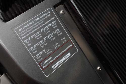 | 作為一輛動輒能跑出350km/h以上極速的頂尖超跑,原廠特別貼心在車門上準備胎壓表以確保高速行駛的安全性。 |
