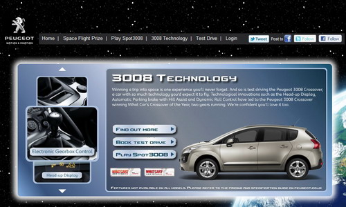 | 英國Peugeot官網推出「找車子!上太空」的超酷活動。 |