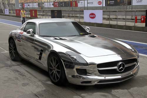 | 剛剛看過台灣低調消光黑式樣的M.Benz SLS AMG後,再來看看這台猶如絕命終結者裡的液態變形對手,全車像是液態汞般的滑順細膩,真是懷疑這樣大白天的開出門,應該很危險吧! |