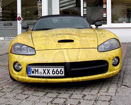 | 這部Viper正是去年本刊曾經報導過的德國知名貼膜製造商CFC的招牌車,其蛇皮紙材設計,讓此車完全符合『車如其名』的形態! |