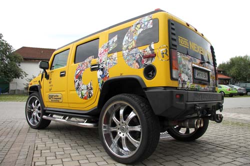 | 充滿陽剛硬派的悍馬H2車款,經由可愛元素的彩繪貼膜妝點後,完全呈現另類風格! |