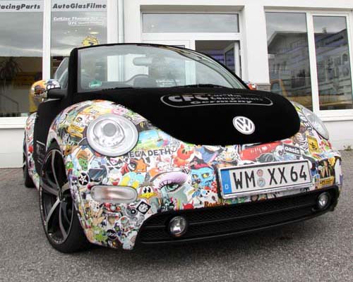 | 原本帶點俏皮風格的VW金龜車,搭配引擎蓋天鵝絨貼膜及車身彩繪貼膜加持後,帶給大家完全不感衝突的視覺感受! |