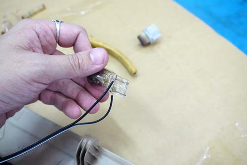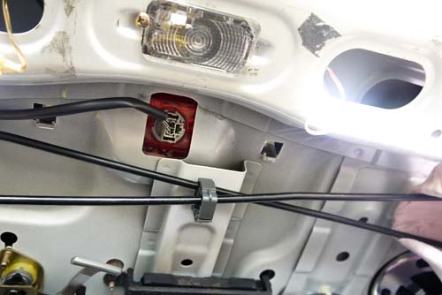 | 穿過第三煞車燈泡底下原本的電源輸入端,並將其纏緊便可,不需焊接,我們將利用燈座內的電源夾片固定。 |