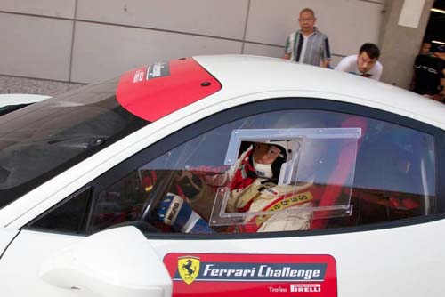 | 總代理──臺灣蒙地拿公司總經理Fabrice de Murat今年也參加了Ferrari Challenge賽事,他對458 Challenge的感想是:只要不作出瘋狂舉動,這部賽車可以讓你一步步體驗賽車的樂趣。 |