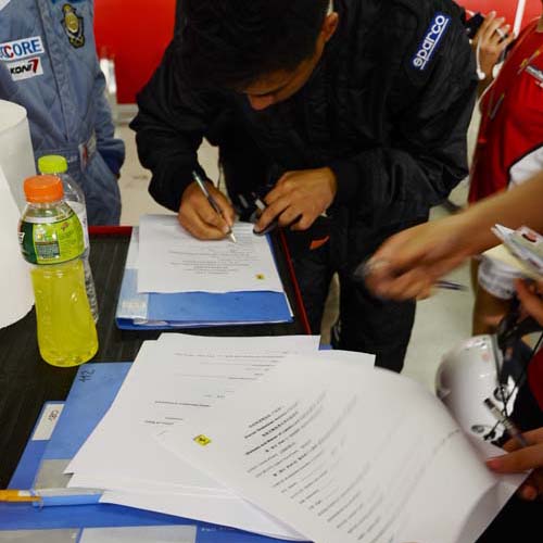 | 試駕不免俗的要簽下一紙切結書,在自己的名字簽下後,一切得更加謹慎,我可不想當場買下一堆壞掉的458 Challenge零件回家作紀念。 |
