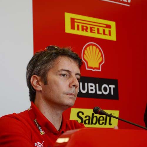 一部部458 Challenge賽車在工作人員指引下魚貫駛入賽道,聽著那有如猛獸般的轟隆隆聲響還有衝出Pit區閘口後所展現的勇猛姿態與驚人速度,心裡又再次擔憂了起來,這時在公關人員的呼喚下,我深深吸了口氣走向簡報室。一位帥哥就坐在講台正中央,他是Ferrari在F1之外的GT賽事最高主管Maurizio Mediani,由於同時具有458 Challenge指導教練的身分,因此接下此次的特別任務。這個機會非常特別,過去從來沒有官方的458 Challenge媒體試駕機會,這是第一次,因此原廠非常重視這次的活動,當我聽到Mediani如此表示,壓力更重了。