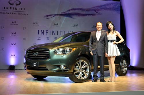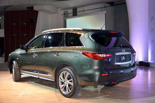 Infiniti JX在北美上市短短不到一個月,即被極具公信力的《WardsAuto World》雜誌評選為2012年度十大最佳內裝車款,獨有的Multimode座椅收納科技,寬廣的第二、三排乘坐空間為獲選主因。裕隆日產更領先其他亞洲國家,於2011年底的台北車展首度展出JX Concept概念車款,並於今年7月4日正式發表,導入的二款車型分別為豪華款與旗艦款,豪華款採前輪驅動售價250萬元,旗艦款則採四輪傳動售價285萬元。JX車款外型最特別之處在於D柱曲線的設計,類似數學的?符號,也為JX帶來更多動感,修長的車身帶有些微的MPV氣息,較高的離地距離卻也帶出了SUV的味道。大量的安全科技也成為賣點之一,搭載全球首創的BCI後撞預防系統,同時配備了AVM360度停車導引系統,在多項科技的加持下,不僅更能預防事故發生,也為駕駛人提供最全面的保障。