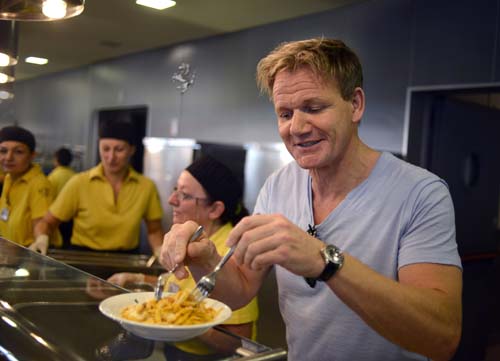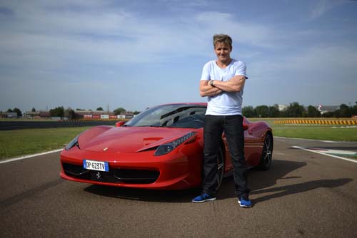 有看過烹飪秀節目的讀者應該對他不陌生,這是全球知名米其林廚師Gordon Ramsey,這位英國烹飪大師忙裡偷閒跑來位於Maranello的Ferrari工廠,放心!他絕對不是要來搶Ferrari餐廳廚師的工作。此次行程除了參觀工廠外也順道造訪Ferrari總部的餐廳,Ramsey品嘗了餐廳廚師準備的前菜及義大利肉醬麵後表示味道棒極了,廚師們在Ramsey發表感言後歡呼慶祝順利過關,並心滿意足的繼續回到工作崗位上。Ramsey本身就是Ferrari的車主,藉這次機會見到了全新的Ferrari F12 Berlinetta,並由試車手駕駛疾馳於Fiorano賽道,體驗了全新V型12缸超跑的740hp大馬力,之後也親自試駕了旗艦型的Ferrari V8超跑458 Italia。