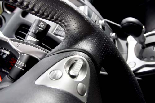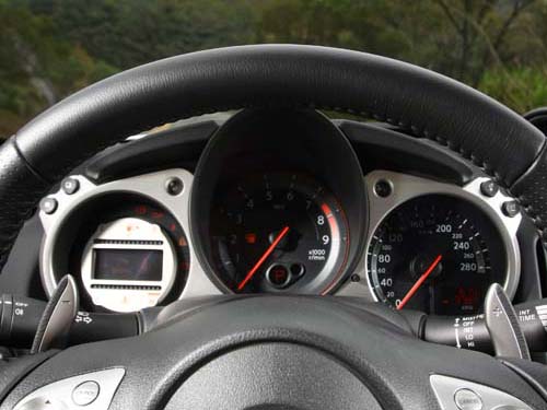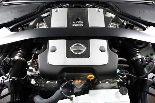 動力方面並未進行額外強化,所搭載的同樣是那具曾連續14年獲選「Wards 10 Best Engines」世界十大引擎獎項肯定的VQ系列引擎,而此具原廠型號VQ37 VHR的3.7升自然進氣V6引擎。搭配7速手自排變速系統後,原廠所提供數據顯示,此具引擎可在引擎轉速7000rpm時爆發出328hp最大馬力,至於高達37.0kgm峰值扭力則可於5200rpm完全釋放。雖然並未特別加強動力性能,但以其0~100km/h加速僅需5.3秒、極速可達250km/h的數據規格來說,整體動力表現仍相當有看頭。受惠於VQ37 VHR所搭載的VVEL(Various Valve Event & Lift)連續可變汽門正時/揚程系統的助益,我們在踩下油門踏板的加速過程中,不僅可清楚感受到輕快靈敏的初段油門反應,即便在大約2000rpm上下的低轉速域也已可提供頗為受用的扭力表現。