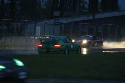 面對周日當天的天候狀況變化陰晴不定,雖然在中午測時賽中已經幸運躲過突如其來的大雨,但是在下午正式決賽前由於雨勢有逐漸加大的跡象,因此極為難得的雨天賽事也被迫所有參賽車隊必須更換雨胎應戰,不過由於不少參賽車輛並未準備雨胎,因此決賽過程中除了SRR陳韋名(158號)與Gama Racing Team林帛亨維持使用光頭胎參賽,其餘未搭配雨胎的Porsche 997 GT3基於安全考量均選擇提前退賽。由於受到大雨攪局加上先前GP1組別事故現場清理的影響,因此被迫延後開賽的Euro GT Challenge也讓昏暗天色彷彿變為夜間賽事,而實際參加的車輛數也因輪胎因素由15輛銳減至9輛,此時為了確保所有車輛的輪胎能夠維持抓地力,因此賽會刻意將暖胎圈增加為兩圈,再重新進行靜態起跑。