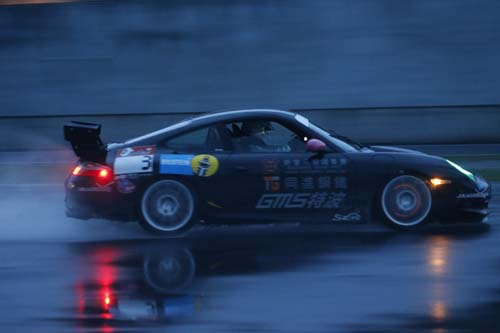 這時處於桿位的李仁全當起跑燈號亮起便立刻把握起跑位置優勢,極為完美的彈射起跑率先取得一號彎進彎路線,只不過很可惜由於左前輪和尚頭突然發生意外斷裂,在只能維持單輪轉向的狀態之下只好被迫提前退賽,雖然錯失了奪冠的大好機會,但是能夠在危急狀況之下救回車輛以避免更嚴重的損傷,已經算是不幸中的大幸。此時位居第二的黃浩洋在順利取得第一優勢後就維持穩健的比賽節奏持續領先,雖然沒有後車逼近的超車戲碼,但是在大雨之中加上夜間能見度降低,對於所有參賽車手所增加的壓力都呈倍數成長,隨著賽事後半段雨勢持續加大,加上賽事已完成75%,大會宣布提前以七圈結束比賽,也讓黃浩洋順利拿下Euro GT A組冠軍。