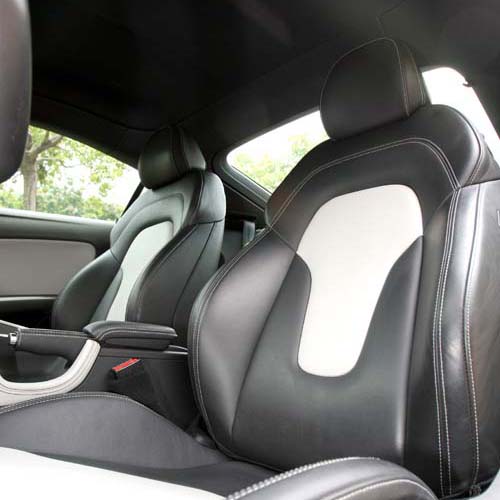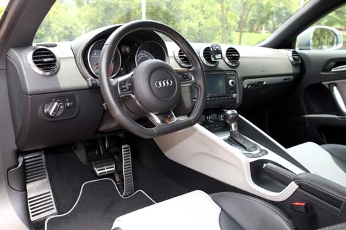 | 內裝方面,麂皮與真皮材質混搭的跑車座椅、刻有「S」徽章的儀表搭配白色指針、金屬材質踏板、以及多處鋁合金材質的裝飾,讓 TTS 更呈現其運動化的車室氛圍。 |