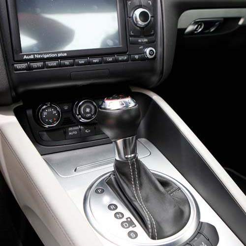 | 裝上S-Tronic變速箱的TTS,加速甚至比手排車款更快;位於排擋座左後方的按鍵則是調整電磁懸吊軟硬的開關。 |