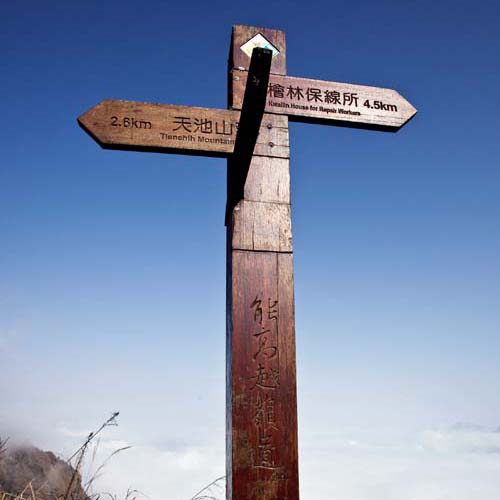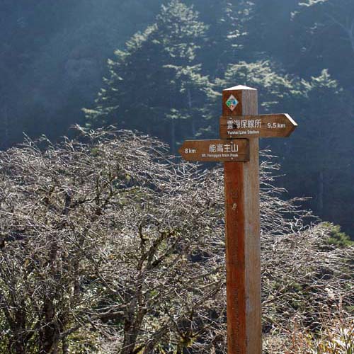 | 古道沿途只要有岔路,就設有指示牌;容易崩坍的區域也都設置警告標誌。 |