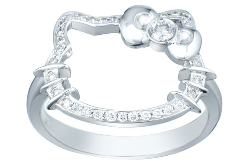 愛戀貓語鑽戒 – 完美的將Kitty經典輪廓融入戒台,色澤飽滿的小鑚鑲滿Kitty的輪廓,打造出無比閃耀的Kitty鑽戒。