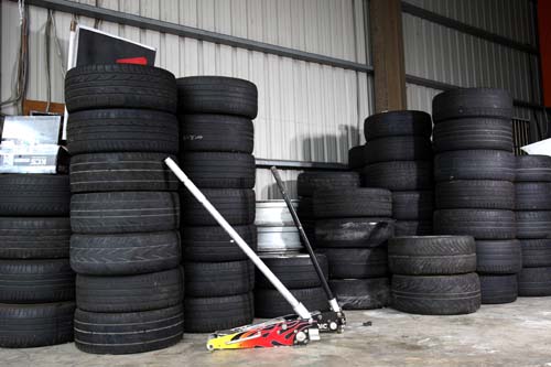 | 以目前甩尾賽事多半是兩天起跳的賽程來看,輪胎的消費其實相當龐大,就連一般的新手都可在兩天內使用掉四套的後輪,這個部分在出賽前就必需準備好大量的輪胎,免得PK到最後敗給輪胎。 |