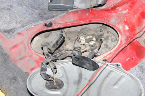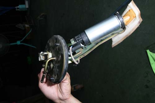 | 原廠汽油泵浦直接安裝在後座底下的油箱內,並且以托架固定著。 |