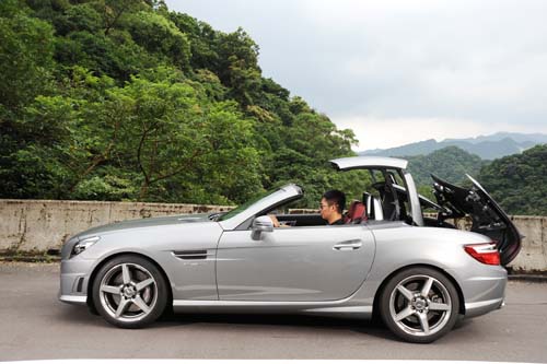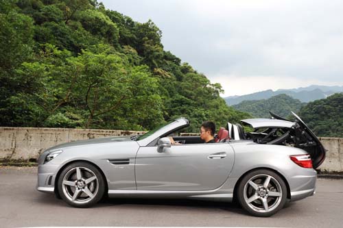 | 敞篷開閉的時間約需20秒,根據M.Benz公佈的資料,在時速7km/h以下都可以自由開閉,不過我們還是比較傾向在靜止的狀態下操作。 |