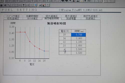 至於所謂的無效噴射時間,指的是噴油嘴從接收到電力訊號,到真正開啟的時間差,由於噴油嘴啟閉的時間極為短暫,因此即使只是0.8毫秒(0.0008秒)的無效噴射時間,依舊須重視,如此才能讓噴油嘴在活塞抵達正確噴油位置前,就開始送電準備噴油,而由於不同噴油嘴對於無效噴射時間的設定皆不盡相同,因此許多高階改裝電腦的設定功能中,皆可設定該數值,使電腦自動調整噴油時間,