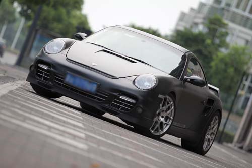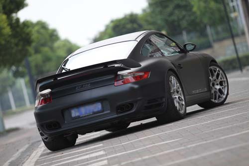 | 全車消光黑不但難以隱藏Porsche 997 Turbo的高性能氣勢,位在車尾GT 750字樣更加明確表明了不可侵犯的王者地位。 |
