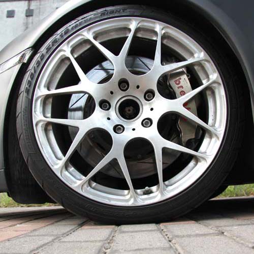 | 為了減輕簧下重量除了換上19吋HRE輕量化鍛造輪圈,對於應付高動力輸出所需車主也不惜重金改以Brembo Monobloc前六後四煞車組,藉由鈦合金材質還能稍稍降低重量負擔。 |