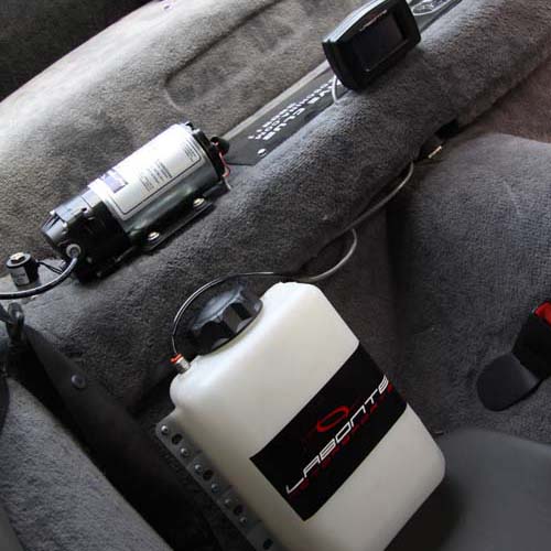 | 特別安裝在後排座椅上的Labonte酒精噴射,在引擎溫度過高時能有效瞬間強化引擎冷卻效能以發揮更加動力輸出。 |