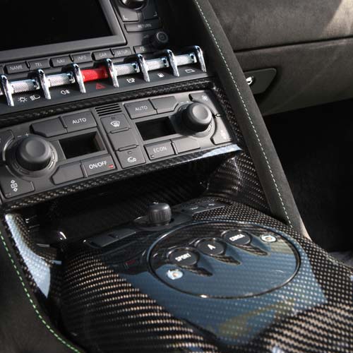 | 車內飾板全數配備碳纖維樣式,附有液晶螢幕與衛星導航的音響主機可視個人需求而取消以減輕重量負荷。 |