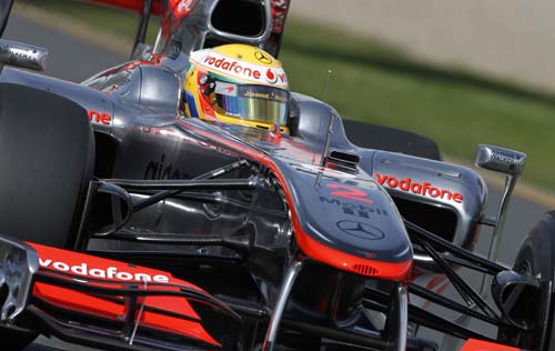 | L.Hamilton的視線方向明顯可看到McLaren F-duct突出的進氣口(2010年)。 |