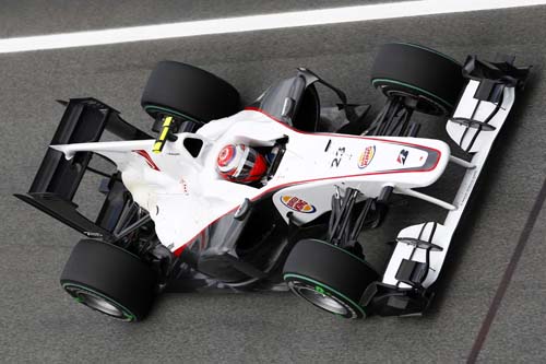 | 車殼背鰭上方連接尾翼的管狀結構即是F-duct管路,但Sauber版本的進氣位置仍與McLaren相同(2010年)。 |