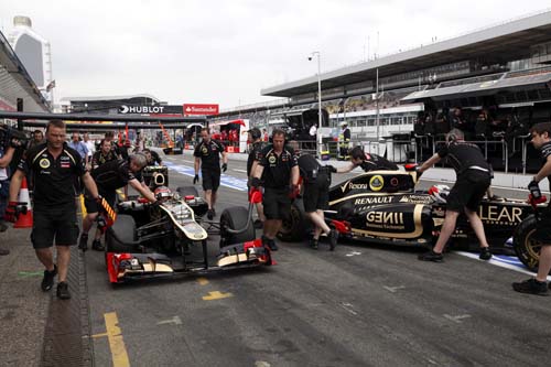 | Lotus在德國站練習賽即開始實測該隊的雙DRS,但因雨天溼地而測不出尾速效果。 |