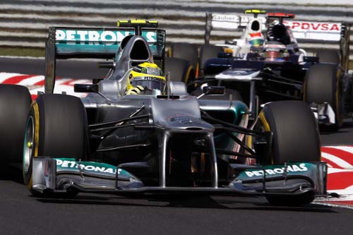 在暑假裡的非停工時間,F1工廠真的很忙,他們會趁季中這個比較長的「非戰期間」徹底檢討上半季的得失,要對賽車進行升級的,會在此時加緊電腦輔助設計、製作新套件、送進風洞實驗,然後再檢討、再修正,也會針對上半季想使用但不夠時間完成的較大規模升級套件進行更充裕的評估。由於這段期間仍然禁止實地試車,因此在比利時站的週五練習賽中,會看到車隊搬出一大堆、各版本的新套件進行測試比對。提到車隊可望推出的較大規模升級套件,首推Lotus的「雙DRS」系統,這套系統是發想自Mercedes今年推出的版本:在DRS作動的副水平尾翼兩側垂直端板上開孔,DRS關閉時無作用,DRS開啟時兩邊的孔也會露出、讓氣流進入、從垂直尾翼往前進入車體、直到車頭再向下吹拂鼻翼,讓尾翼(DRS原本的目的)和鼻翼同時降低下壓力(增加揚力),在車尾和車頭同步減少風阻的前提下,不但能製造更高的尾速,而且也顧慮到頭尾平衡。