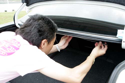 | 一切工序完成後,再次確認燈條是否正常發光,接下來,不管是在晚上或是昏暗的地下停車場,不管是置放行李,或是找尋行李箱內物品,都能在充足的光源下,快速、正確地找到,不再像只迷途的羔羊,找個老半天! |