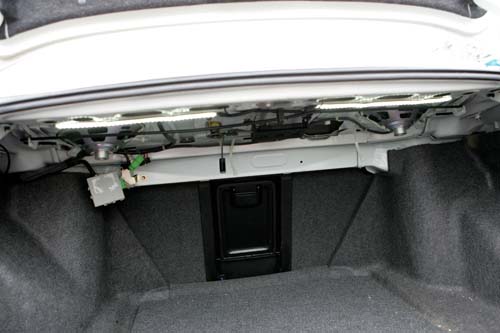 另外,先在此說明一下,現今多數的LED燈條都無正負極之分,僅有少數的燈條設計在使用上仍有正、負極電壓之分,因此當你在完成所有的LED燈條安裝手續後,發現燈條無法正常發亮,那便是有正、負極之分的設計,只需將線路作對調,便可解決此問題。將線路確實纏繞後,便可將原本的行李箱燈裝回原本的燈座,確認燈條正常發光作動後,便可將LED燈條以強力雙面膠貼附在你覺得適當的位置,如此之下,後行李箱從此將不再是伸手不見五指的空間囉!