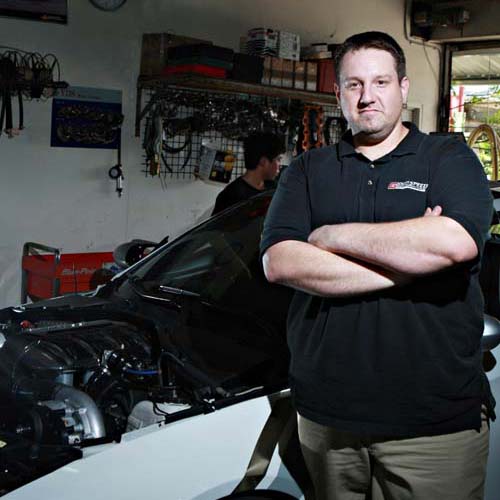 | 從小就跟著父親車子就是我的玩具這次特別由美國請來傳承安裝及調校工程的JOE,問起他接觸汽車有都久了,他猶豫了一下不知道該如何回答,因為從小JOE就跟著爸爸在修車廠內,人家的玩具是模型汽車,可是JOE的玩具可是真車,摸著真正的引擎長大。因此安裝這套ESS Tuning VT2-625增壓器根本沒有問題,黑桃還偷偷告訴筆者,JOE其實僅需半個工作天就可將該套件安裝完成。 |